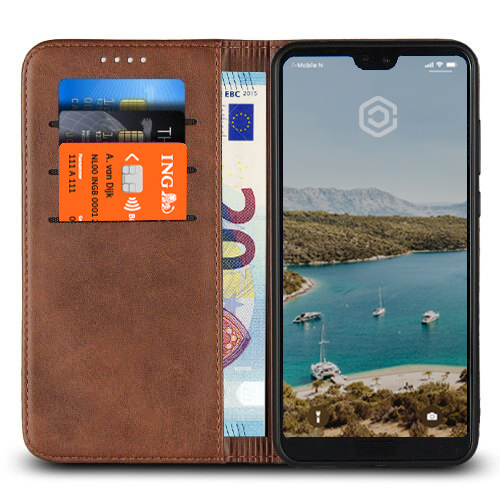 De Casecentive Leren Wallet Case Huawei P20 Pro bruin geeft je de mogelijkheid om je telefoon en pasjes op een veilige manier op te bergen.